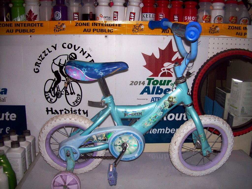 #470 Huffy Frozen – 8″ frame – 12″ wheels – $25